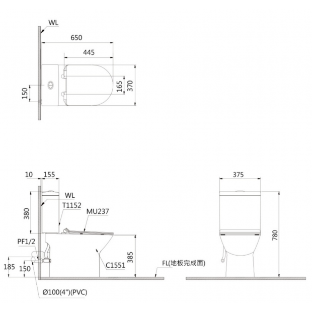 CF1551U / CF1551N / CF1551P 牌價:$24,900 產品規格 / 功能 尺寸 : W37 x D65 x H78(座高38.5)cm 洗淨方式 : 沖水式 排水距離 : 12~22 /30cm/P排18.5 cm 洗凈水量 : 3L~6L 相關商品 : 馬桶便座-C1551 / MU237 緩降快拆 水箱另件-T1152 / FP840RT 免治可搭配 : TAF210 /168 /160