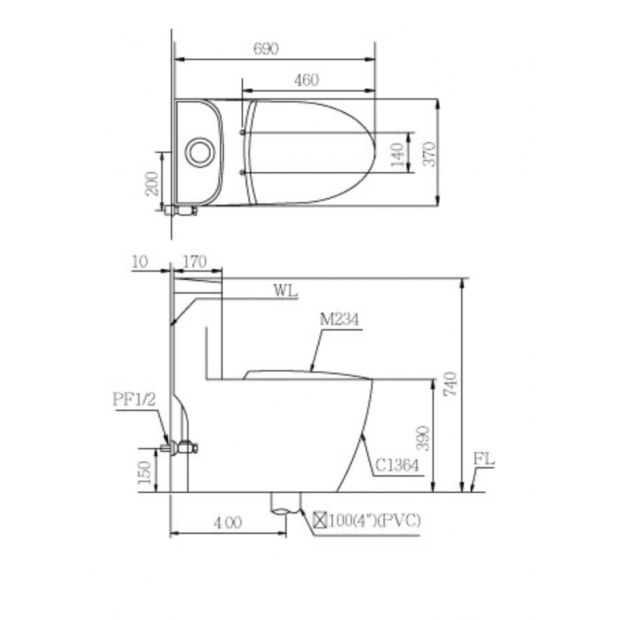 C1464 牌價:$31,900 產品規格 / 功能 尺寸 : W37 xD69 xH74(座高39)cm 洗淨方式 : 噴射虹吸式 排水距離 : 40 cm 洗凈水量 : 4.8L 相關商品 : 馬桶便座-C1464/M234(緩降) 水箱水件-FP864A 免治可搭配 : TAF220 /210(L) /200(L) /180L /178 /170 /168 /160 /191(L) /060