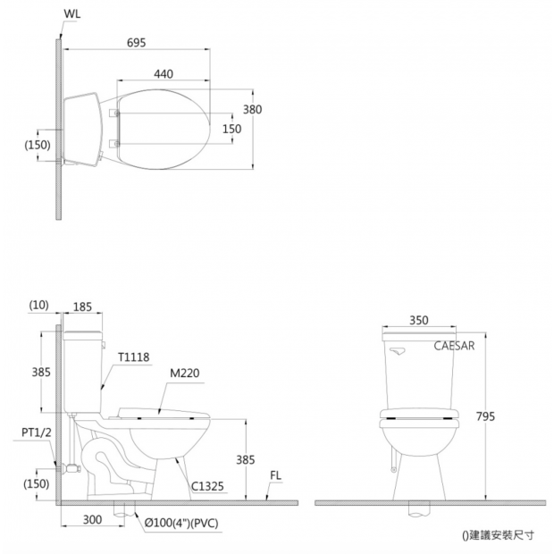 CTH1325 牌價:$11,300 產品規格 / 功能 尺寸 : W38 xD69.5 xH79.5(座高38.5)cm 洗淨方式 : 噴射虹吸式 排水距離 : 30 cm 洗凈水量 : 4.8L 相關商品 : 馬桶便座-C1325 / M225 緩降快拆 緩降快拆 水箱水件-T1126 / FP826C 免治可搭配 : TAF200 / 191 / 168 / 160 / 060 備註 : CTH1325N-加購奈米抗菌